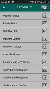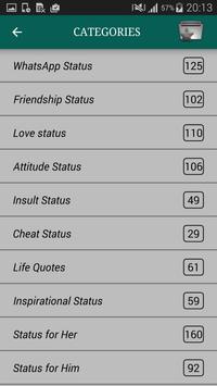 Whatsapp Status, Friendship Status, Love Status, Attitude Status, Insult, Cheat, Life Quotes, Status for Her, Status for Him, Breakup, Motivational, Awkward Moments, Emotional, Sorry, Crush, Jealousy, Family, Birthday Statuses