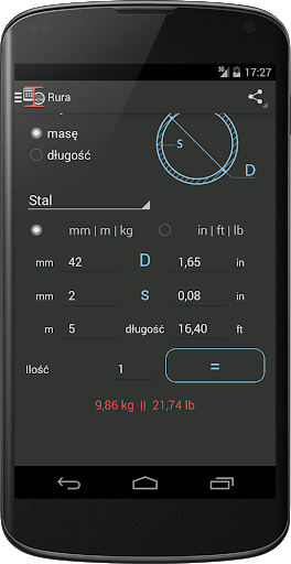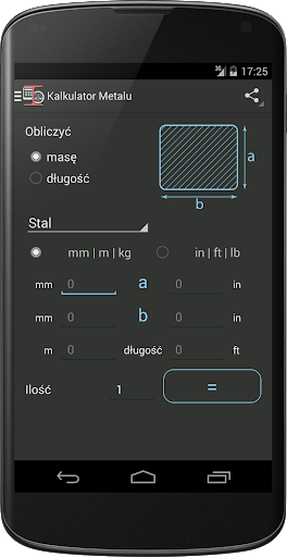 Ta aplikacja pomoże ci obliczyć wagę lub długości wybranych metali w różnych formach. Za pomocą tego kalkulatora możesz określić długość i uzyskać waga metalu, i odwrotnie.