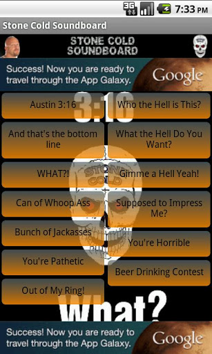 All the best from the one and only Stone Cold Steve AustinThe texas Rattlesnake, the toughest SOB to ever grace the WWEIncludes: WHAT Gimme a Hell Yeah Austin 3:16 Many moreSave as a ringtone or notification.Let us know if you see a classic we left outDISCLAIMER:All sounds are property of WWE.