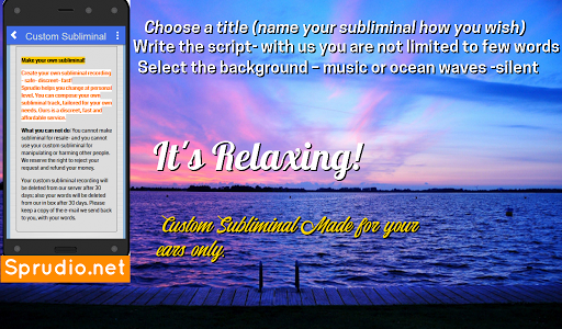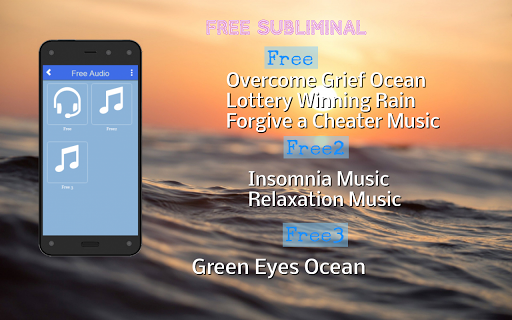 Darmowa aplikacja Sublimina. Ponad 30 programów podprogowych do użycia. Działa tylko w nowszych systemach operacyjnych. Subliminal audio pomoże Ci ze stresem, niepokojem, rzucić palenie, utraty wagi, rosnąć wyższy, pokonać smutek i wiele więcej. Nic do stracenia. Wystarczy pobrać i grać. Pliki do pobrania i bezpłatne pliki do pobrania bez reklamy. Tło to fale oceanu lub deszcz, a każdy utwór jest ponad 10 minut. Journey Healing.
