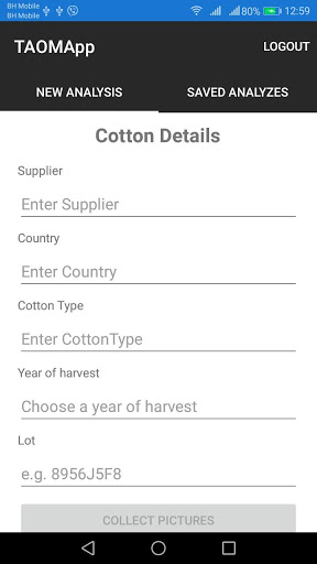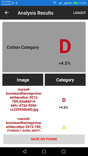 The application use photos of the cotton bales to calculate trash level with AI technology. The result is divided in 4 classes: A (from 0% to 1.5%), B (from 1.5% to 3%), C (from 3% to 4.5%) and D (more than 4.5%). The application permits to collect a large number of samples, in order to improve the accuracy and have a global situation of the material.