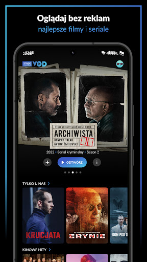 TVP VOD to produkcje oryginalne, niedostępne nigdzie indziej, z najpopularniejszymi polskimi aktorami. Serwis oferuje również dostęp do kochanych przez miliony widzów polskich seriali online i to przedpremierowo! A także oscarowych produkcji, hitowych seriali zagranicznych, nagradzanych dokumentów i rozrywki na najwyższym poziomie.