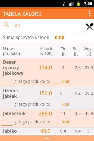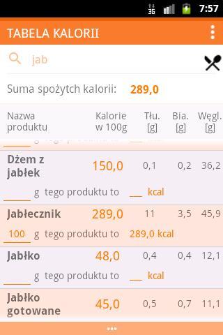 Sprawdź kaloryczność dowolnego produktu spożywczego, dowiedź się dodatkowo, ile zawiera tłuszczu, białka i węglowodanów w 100 g.