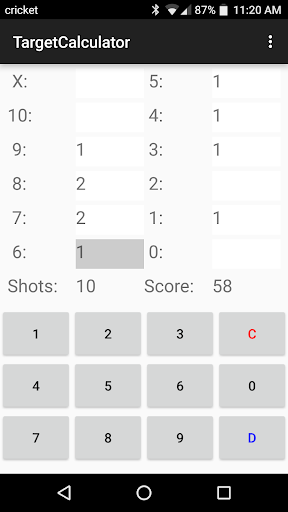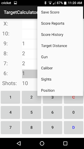 This calculator will easily score your targets. Just enter the hits per ring and your total score will be displayed. You can enter the target distance, gun used, caliber used, sights used and position. Score reports can be produced that will summarize your scores by day, month or year for a date range, gun used, position used and distance.