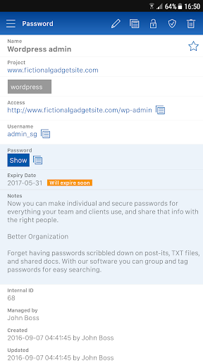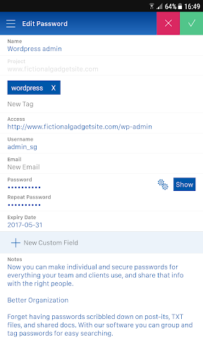 Team Password Manager is a multiuser password management software that allows your company to manage passwords efficiently and securely. It's a self hosted web app that you can now connect to and use natively from your Android smartphone.