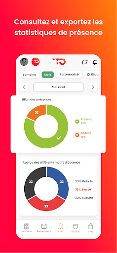 📊 Statystyka: Wizualizuj obecność graczy na różnych rodzajach szkolenia dzięki jasnej i pouczającej grafice.Śledź postęp swojego zespołu i podejmij świadome decyzje w celu poprawy wydajności.