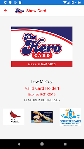 The Hero Card is a community Discount Card that allows you to save money all year long at participating businesses while giving back to local and National Heroes.