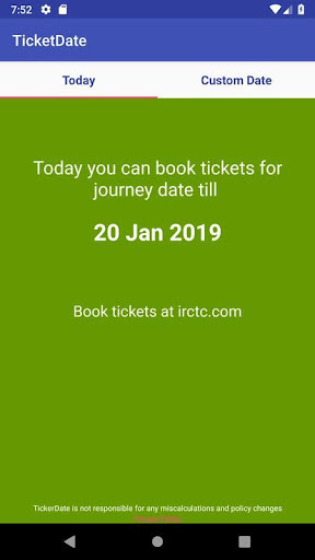 Indyjskie koleje umożliwiają rezerwację biletów kolejowych w IRCTC, 120 dni przed datą podróży.Jest to prosty kalkulator, który pozwala obliczyć datę rezerwacji.