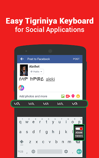z klawiaturą Tigrinya Możesz napisać wszystkie alfabety Tigrinya, litery i słowa bardzo szybko i łatwo. Wpisz Tigrinya to darmowe narzędzie do transliteracji, korzystając z tej aplikacji Możesz wpisać angielski i uzyskać tekst przekonwertowany na język Tigrinya. Ta aplikacja - klawiatura Tigrinya - pomaga komunikować ze swoim światem w swoim języku. Komunikacja w twoim języku przybliża cię do twoich ludzi!