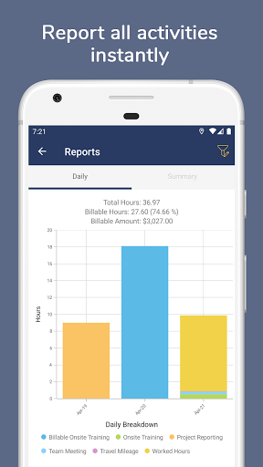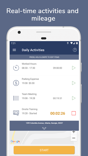 Możesz łatwo przechwycić pracę w pracy, przerwy, rozliczane czas, przebieg, a nawet dodawać obrazy do działań. Działania mogą być śledzone w czasie rzeczywistym lub wprowadzone na koniec dnia za pomocą edytora arkusza czasu. Wszystkie zajęcia w czasie rzeczywistym są zlokalizowane GPS.