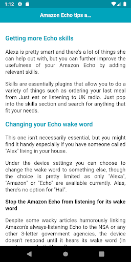 Get more from your Amazon Echo. Learn essential tips and tricks. Amazon Echo is a Smart speakers where you can ask many things to do. In this app, you will get all essential information, tips and tricks to maximize your experience with Amazon Echo.