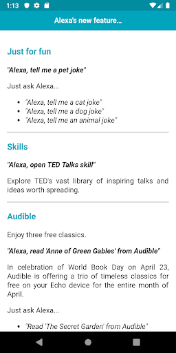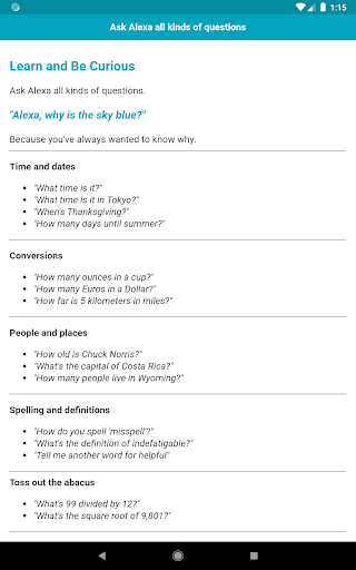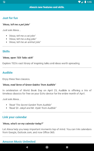Install this app and learn all the essential stuff you need to know about Echo and Alexa. Enjoy :)