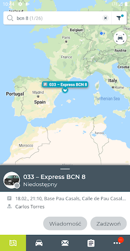 Wiadomości i kontakt z kierowcami: Wyświetlanie wiadomości tekstowych, statusu i danych o zamówieniach. Wysyłaj informacje bezpośrednio na terminal kierowców PRO Driver Terminal.