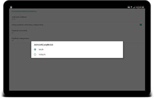 Przekroczenia prędkości są prezentowane w postaci wartości liczbowych oraz poprzez zmianę kolorystyki aplikacji co pozwala na kontrolę stałej prędkości (lub prędkości w określonym przedziale) bez ciągłego śledzenia ekranu aplikacji. Wartości minimalne oraz maksymalne można zdefiniować w dowolny sposób aby zachować odpowiedni margines błędu wskazań prędkościomierza.