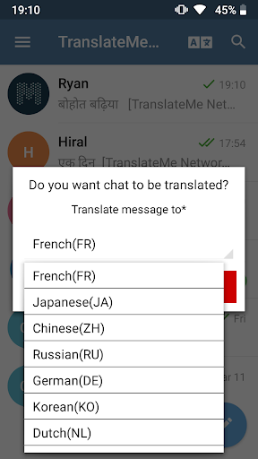 Translateme Telegram Messenger ma taką samą strukturę co oficjalny telegram, ale różnica polega na tłumaczeniu.Teraz możesz komunikować się z innymi w różnych językach.Przetłumacz grupy telegramowe i prywatne czaty.Piszesz w swoim ojczystym języku, a ekran pojawia się w tłumaczeniu, może to pomóc w nauce języka podczas rozmowy z przyjaciółmi i rodziną.Wspieraj nas i pomóż nam zbudować nowe funkcje.