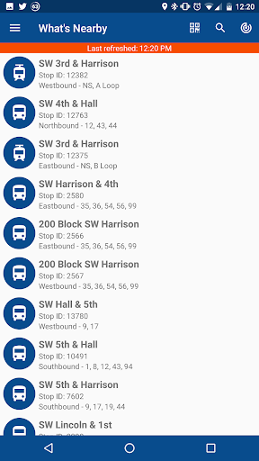 * Lists nearby stops with a configurable search radius