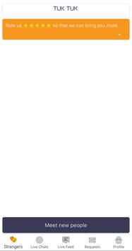 TukTuk is an application which allow you to meet and chat with strangers anonymously. You don’t need to create any login or account. Just start one to one chat with a single tap. Very Simple!