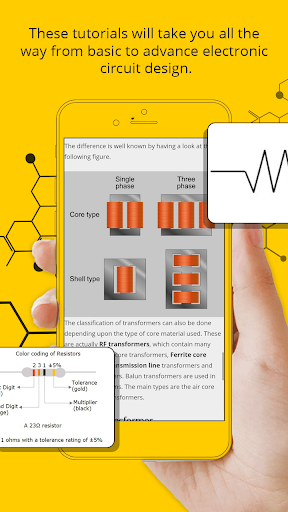 Basic Electronics supplies basic information on how to use electronic components and explains the logic behind solid state circuit design. Starting with an introduction to semiconductor physics, the tutorial moves on to cover topics such as resistors, capacitors, inductors, transformers, diodes, and transistors. Some of the topics and the circuits built with the components discussed in Tutorial For Basic Electronics.This app will help you to learn Basic Electronics easily with practical example.