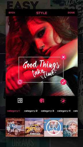 przekazać wiadomość, dodając tekst lub podpisy do projektów. Automatycznie zmień swoje słowa w piękne wzory tekstowe - wystarczy stuknąć i stuknąć, aby mieć piękne cytaty zdjęć!