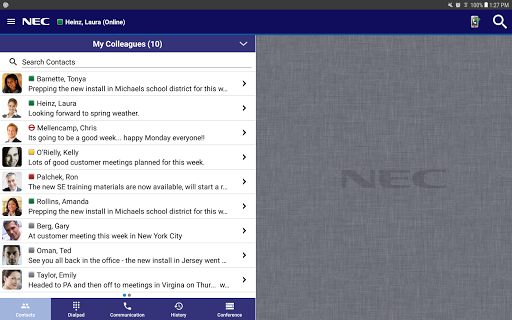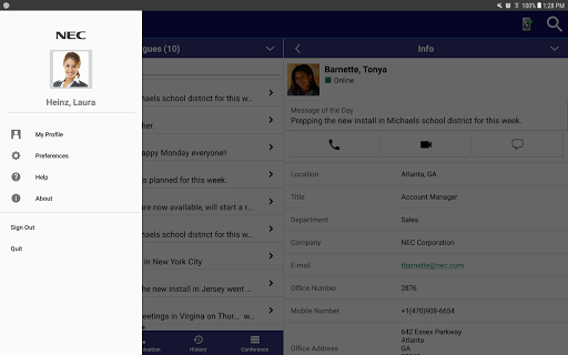 - Informacje o kontaktach, takich jak pełna nazwa, tytuł . Następny poziom. Dzięki systemowi Univerge 3C Mobile Client Plus i Univerge 3C możesz kontrolować swoją komunikację multimedialną z dowolnego miejsca, w dowolnym czasie i na dowolnym urządzeniu. Aplikacja wymaga Univerge 3C Unified Communications Manager w wersji 10.1 w celu uzyskania pełnej funkcjonalności. Jednak Univerge 3C Mobile Client jest kompatybilny ze wszystkimi wersjami później niż Univerge 3C Unified Communications Manager 10.0 o ograniczonej funkcjonalności. Więcej informacji skontaktuj się z lokalnym przedstawicielem NEC.