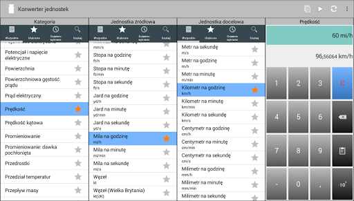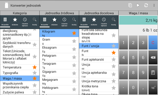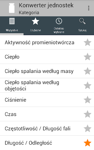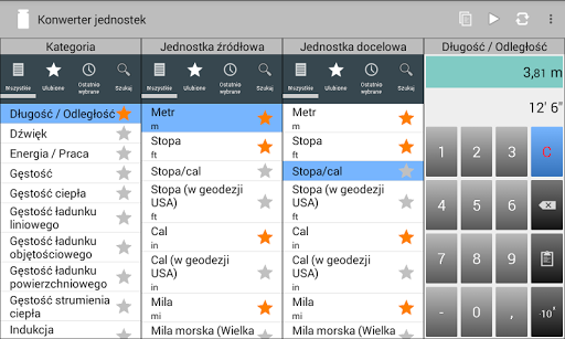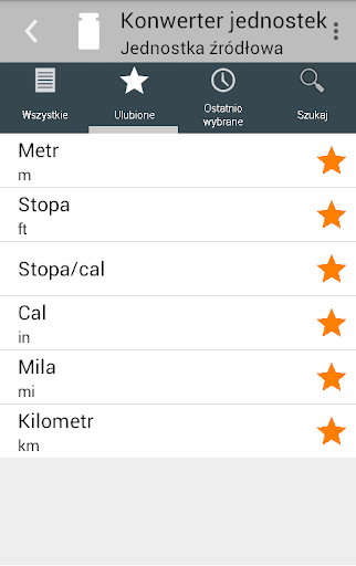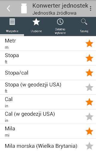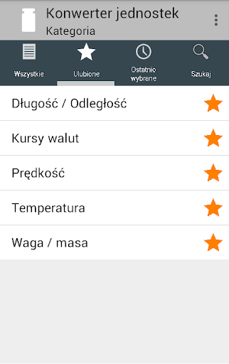Pomimo ogromnej ilości funkcji nie można się w tej aplikacji zagubić. Zarówno kategorie jak i jednostki mogą być zaznaczone jako Ulubione, a następnie zgrupowane razem w widoku Ulubionych. W tym widoku widać tylko te kategorie lub jednostki, które są potrzebne. Można również przeszukiwać kategorie i jednostki lub odnaleźć je na liście ostatnio używanych elementów. Niewielka liczba najbardziej popularnych kategorii i jednostek (miar) jest już wybrana w Ulubionych po zainstalowaniu konwertera.