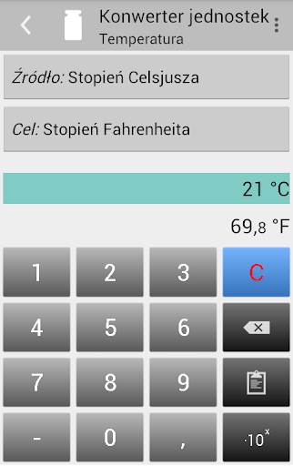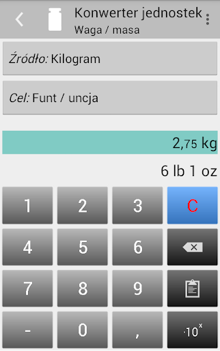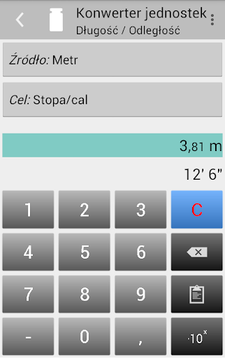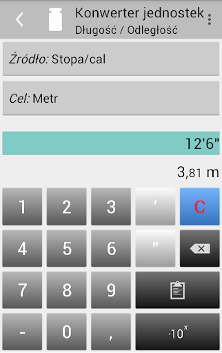 • Android 13 i nowsze: możliwość wyboru innego języka (Ustawienia > System > Języki i metody wprowadzania > Języki aplikacji > Konwerter jednostek)
