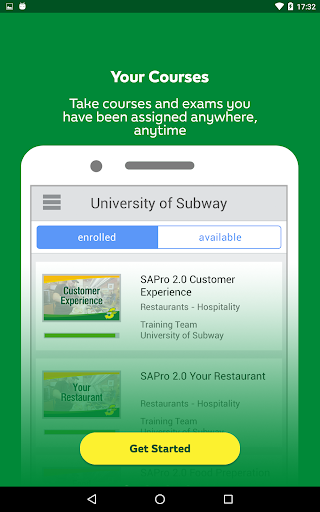 University of Subway® to darmowe narzędzie do szkolenia online dla franczyzobiorców SUBWAY®, aby pomóc w szkoleniu swoich pracowników.Właściciele restauracji Subway® na całym świecie mogą korzystać z tego narzędzia do przypisania kursów i quizy do pracowników do podjęcia swoich tabletów i urządzeń mobilnych.Aplikacja jest zlokalizowana w 8 językach (angielski, hiszpański, portugalski, niemiecki, francuski, chiński, koreański i turecki).