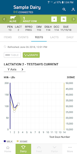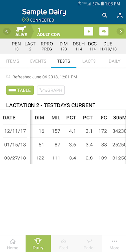 • Przeglądaj indywidualne dane krów dla obecnych laktacji