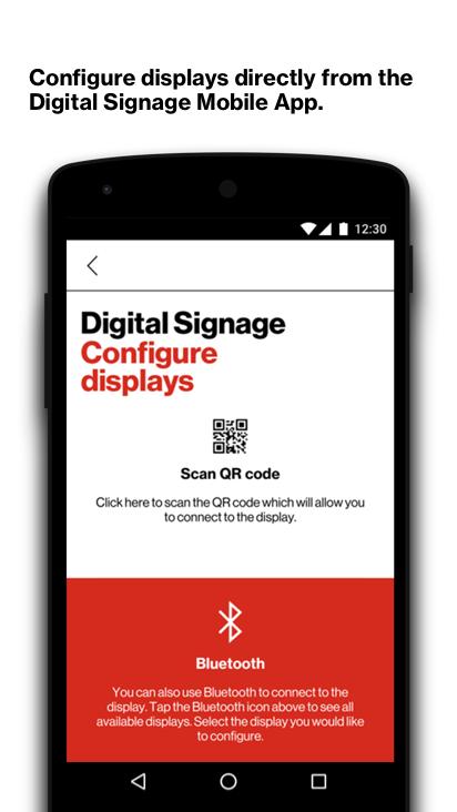 Manage your LTE Media Players anytime, anywhere with the Digital Signage Mobile App. In-app tools give you the ease and flexibility to configure your screens by pairing via bluetooth or QR code.