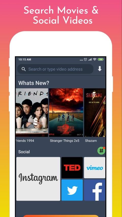 Video Downloader - New light video downloader allows you to download videos from Instagram, Facebook and from all other social medias or download movies from your favorite movie websites.Built-in