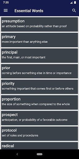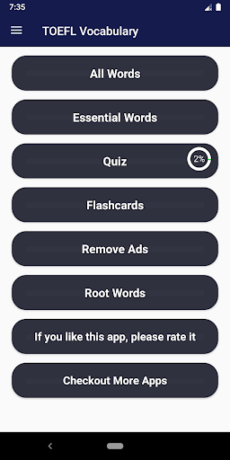 Uruchom swój preparat TOEFL teraz przez codzienne uczenie się kilku słów z tą aplikacją.