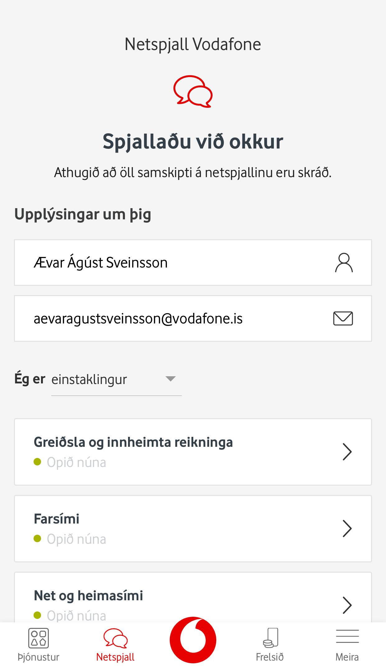 - Fengið aðstoð þjónustufulltrúa í gegnum netspjall