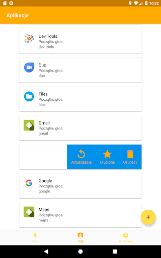 - Przypisywanie znaki głosowe aplikacji, kontaktów, ustawień;