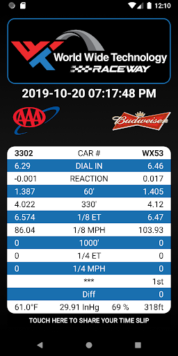 Przejrzyj swoje przecinki czasowe wyścigów z naszą aplikacją podczas ścigania się na World Wide Technology Raceway.