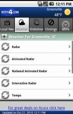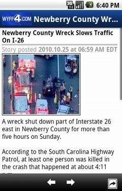 Check out WYFF4.com -- Live. Local. Breaking News. The best way to get your local news, weather, sports and more. We provide our news content, formatted to fit the Android screen. Free breaking news alerts and weather coverage from WYFFNews4, WYFF4.com to keep you in the know. - Breaking News from WYFF News 4 - Weather Alerts and Forecasts From WYFF 4 Meteorologists - Free Interactive radar to help you tracks storms - Watch WYFF 4 news video - Check school closings -Updated traffic information -Latest sports news - See breaking news? Send breaking news: ulocal@wyff4.com"" -Winning lottery numbers - Horoscope, lottery and local movie times entertain and inform - Flight tracker helps you to find your flight and keep up with any changes