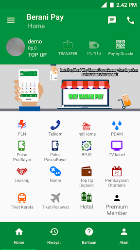 Unduh, daftar dan gunakan Berani Pay sekarang juga. Jangan lupa isi saldo Anda untuk menikmati kemudahan transaksi online yang AMAN dan MUDAH.