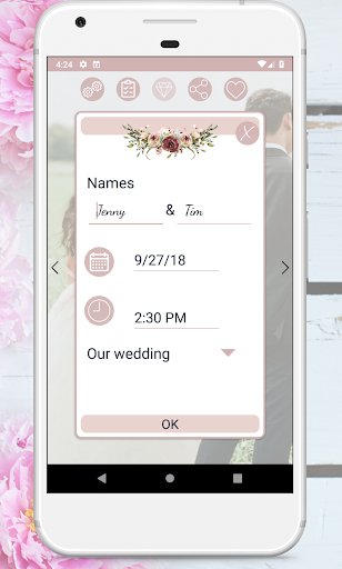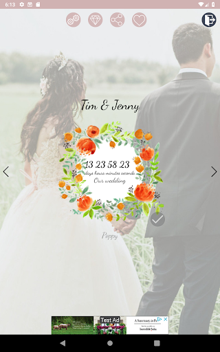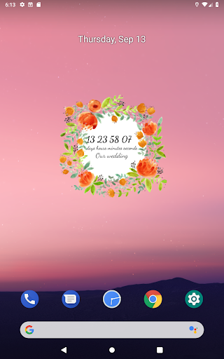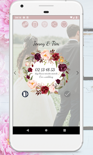 Darmowy Niekonwencjonalny Kwiatowy Odliczanie Do Ślubu aplikacja ślubna będzie pokazywać Ci ile dni, godzin i minut pozostało do Waszego ślubu.