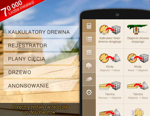 • Jedyny kalkulator objętości drewna okrąłego na urządzenia mobilne, z 21 sposobami przeliczania!