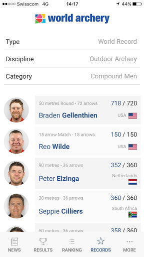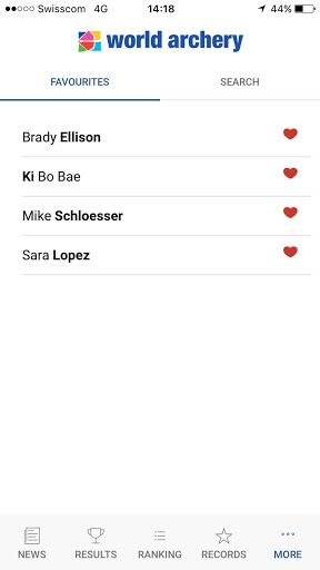 • Athlete – profiles, and the ability to favourite archers