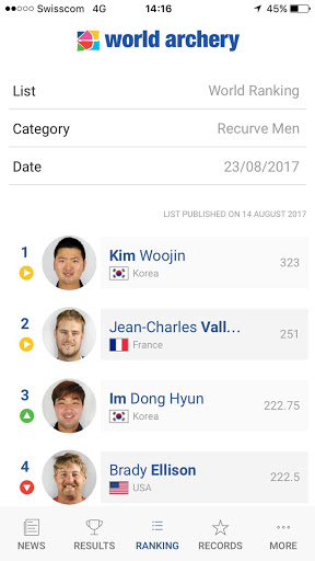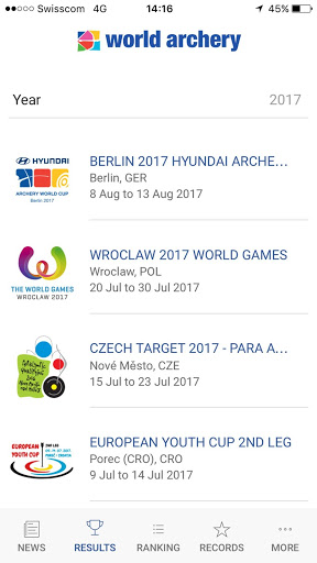 The redesigned World Archery app has the following functional features: