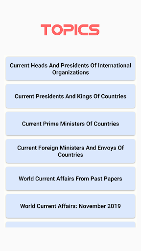 World Current Affairs is a best app to collect and present as many multiple choice questions so that you can practice and test your knowledge on any given topic for all competitive exams.