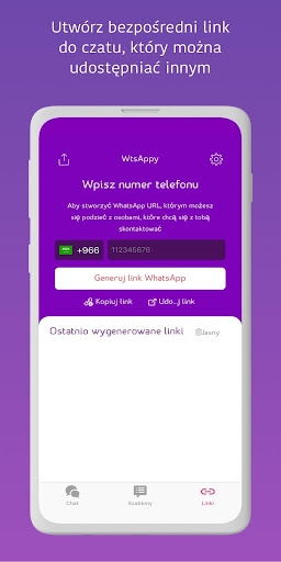 • Stwórz swój własny link WhatsApp z WtsAppy i dziel się nim ze wszystkimi osobami, które chcą się z tobą komunikować przez WhatsApp, będziesz jedno kliknięcie od niego, zamiast dzielenia się numerem i zapisywania kontaktu. Link do WhatsApp jest niezbędny, zwłaszcza jeśli prowadzisz firmę, i teraz możesz go stworzyć w 10 sekund z WtsAppy!