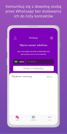 • WtsAppy daje ci możliwość rozpoczęcia rozmowy na WhatsApp bezpośrednio przez skopiowanie/wklejenie numeru do aplikacji WtsAppy.