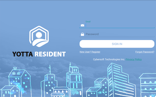Aplikacja mobilna używana przez mieszkańców nieruchomości w połączeniu z rozwiązaniem do zarządzania nieruchomościami YOTTA zasilane przez Cybersoft.