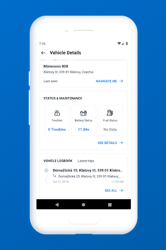 ZF Car Connect app supports drivers in their day-to-day work. Access vehicle information, status and basic diagnostics on the go. Find vehicles with GPS location and get directions to navigate there. The app serves as a vehicle logbook for all actions and trips of passenger cars. The app works with the Vivaldi I and II onboard unit provided by ZF Friedrichshafen. A part of the ZF Car Connect solution is a web-based portal for fleet operators with the apps Dashboard, Trips and Maintenance. Contact us under info.openmatics@zf.com to get information on pricing of the ZF Car Connect solution.