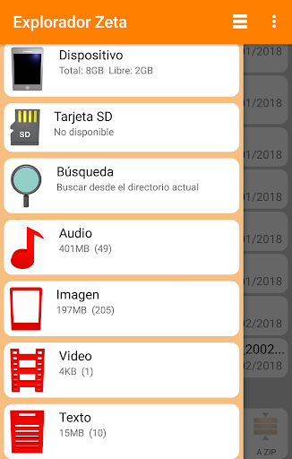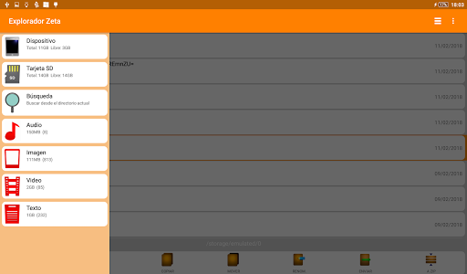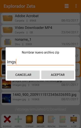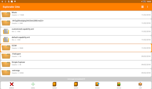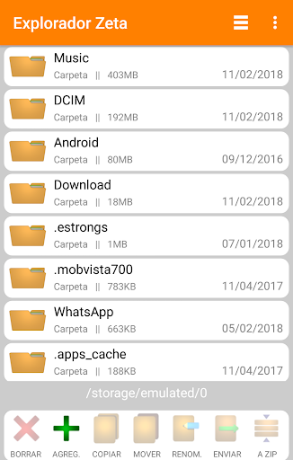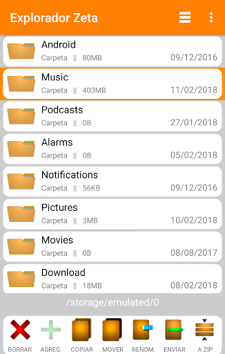 Functions: cut, copy, delete, rename, send, create new folder, compress and decompress in zip format.