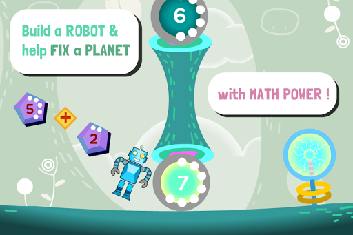 Planet Mathemo zabrakło energii!Wysyłamy w botach matematycznych, aby ponownie zasilać planetę jedną sekcję na raz.Użyj swoich mocy dodawania, odejmowania i mnożenia, aby uratować dzień!