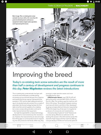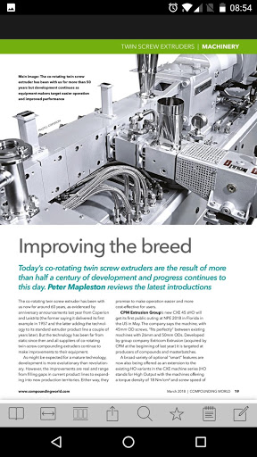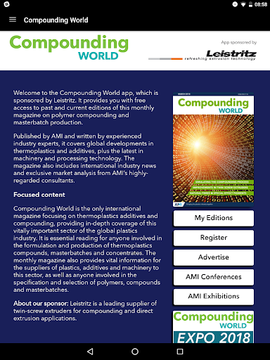 Compounding World is essential reading for anyone involved in the formulation, manufacture or specification of thermoplastics compounds. This app provides access to past and current issues free-of-charge.