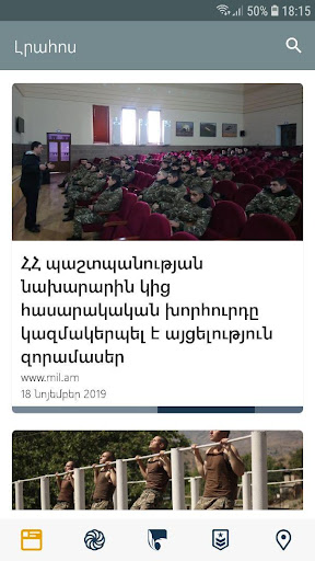 Bądź na bieżąco z wszystkimi najnowszymi wiadomościami z www.mil.am i www.hayzinvor.am, wyświetlać filmy z oficjalnego kanału YouTube.Uzyskaj informacje społeczne w sekcji usług wojskowych i track i oferty dostaw w sekcji Ogłoszenia.Uzyskaj informacje o lokalizacjach i kontaktach w interaktywnej mapie.
