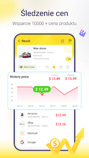 Dzięki temu potężnemu skanerowi produktów możesz uzyskać szczegółowe informacje o produkcie jednym kliknięciem, szybko sprawdzić cenę i wygodnie porównać różne ceny. Możesz go również używać do skanowania promocji i kodów kuponów 💰, aby uzyskać zniżki. Pobierz ją i uprzyjemnij zakupy! 👍